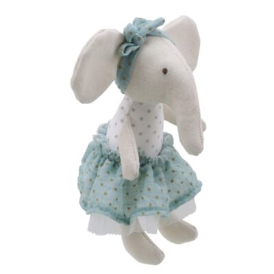 Looking unbelievably cute in her little green outfit with matching headband, and those ears and that trunk – wow!