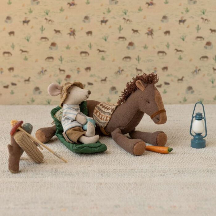 This big brother mouse is all set for an exciting hiking adventure. He comes dressed in a top, shorts and hat, and on his back is his all essential sleeping bag, which he can roll out and enjoy a cosy night under the stars.
