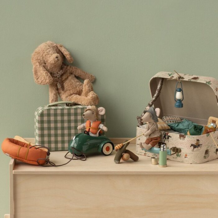This super cute car is the ideal mode of transport for your Maileg mice! It’s made from metal and has a tow rope that you can attached should you wish to pull them along. Furthermore, all members of the mouse family can drive this (so long as they have passed their test!) from little brother/sister size up to mum/dad. It has three wheels, a mock leather padded seat, steering wheel and a personalised number plate on the rear – how cute is all of that?