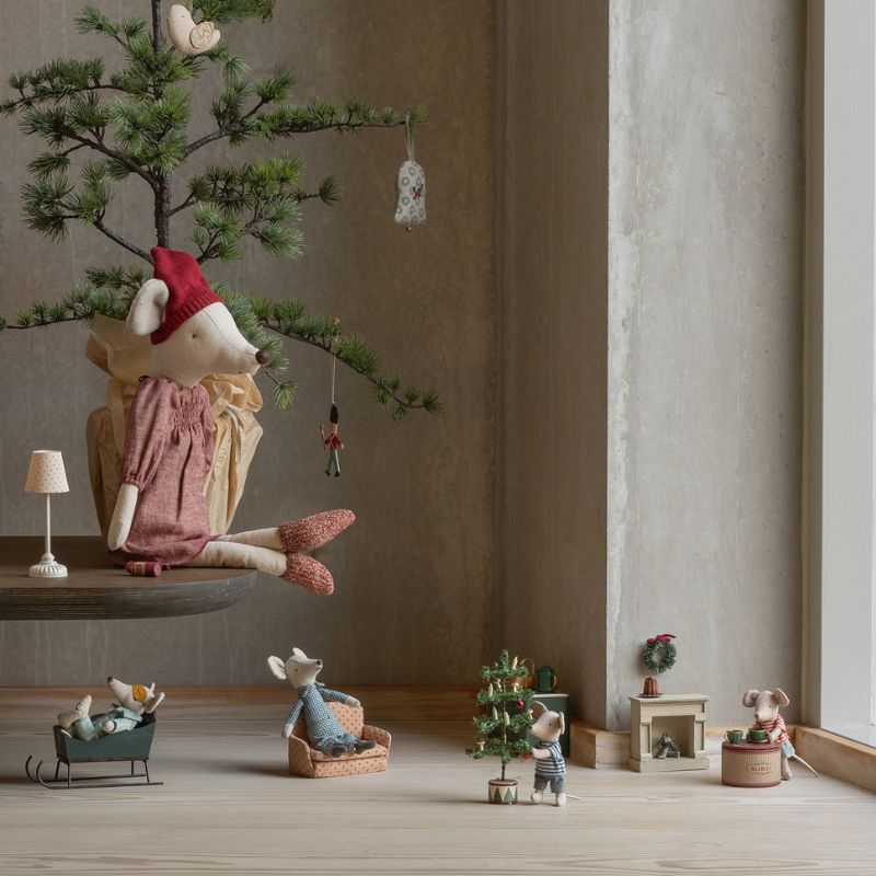 This gorgeous, Christmas Tree has small decorations on its branches, and if you add a battery, the LED bulbs will light up your tree. This tree will give your mouse house, that festive look. It fits perfectly in the Maileg Castles and Gingerbread House, or any other small dolls houses. Battery NOT included, it will require a 1 pcs coin cell battery CR2032.