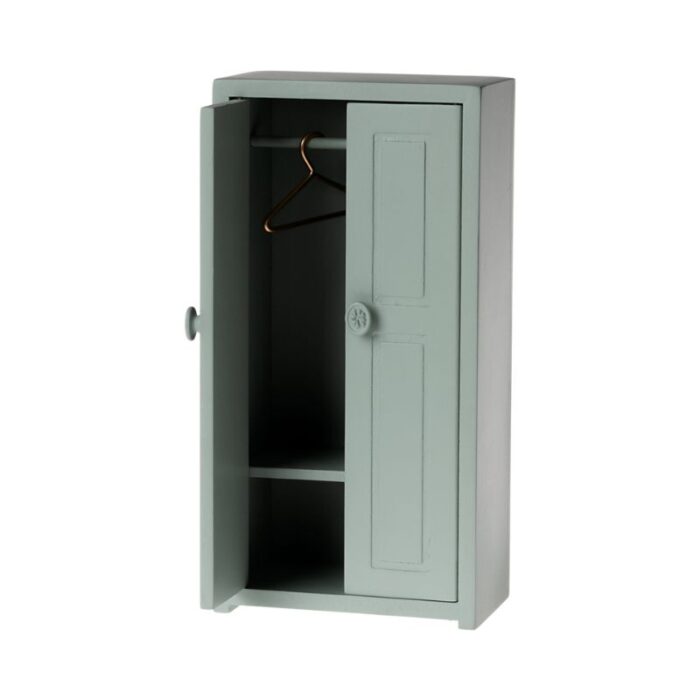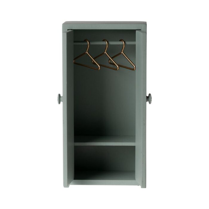 Maileg is known for its creative and playful approach to children’s toys and collectibles, and the Maileg Wooden Closet, Mouse – Cream is no exception. Beautifully fashioned from wood, this petite closet stands at about 14 cm in height and 7 cm in width, making it just the right size for Maileg mice or similarly scaled dollhouse figures. Its cream-colored exterior gives it a timeless look that fits wonderfully with the brand’s signature pastel palette, ensuring it coordinates perfectly with other Maileg pieces you might already own. The two doors open to reveal a hanging rail stocked with three golden hangers, offering an elegant way to tidy up your mice’s clothing items. Below the rail, you’ll also find a shelf that’s perfect for folding and stacking extra linens, accessories, or even tiny shoes.