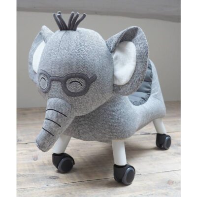 Sound the trumpets because here comes Cuthbert, the most charming elephant ride-on toy you’ll ever meet! The Cuthbert Animal Ride-On by Little Bird Told Me is designed to spark joy and inspire hours of giggles and adventures. With his soft, textured grey herringbone fabric, crinkly ears, and rattling tail, Cuthbert isn’t just a toy—he’s a sensory experience that captures the imagination of toddlers aged 12 months and up. His adorable details, from his appliqué glasses to his tuft of tactile hair, make him a standout addition to any nursery or playroom.