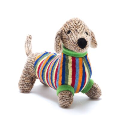 This characterful pup is so adorable with his droopy ears, long tail and colourful stripy jumper, he’s popular with us grown-ups as well as with the kids – in fact, most customers who have purchased this have admitted it’s for them and not a child.