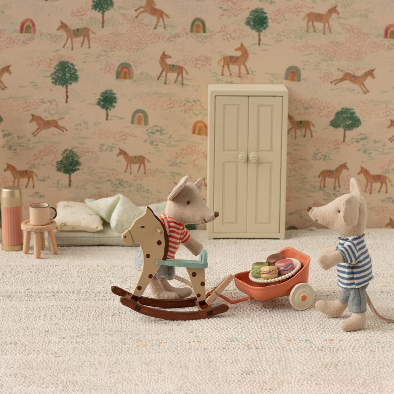 LouiMax and Stella are an absolutely adorable pair of siblings. They’re Maileg Little Brother and Little Sister in size and fit perfectly in the new SuitCasa House (available to purchase here very soon). They’re wearing co-ordinated outfits of denim bottoms and stripy tops, and come complete in their own gorgeous little house! They each have magnets in their paws too.