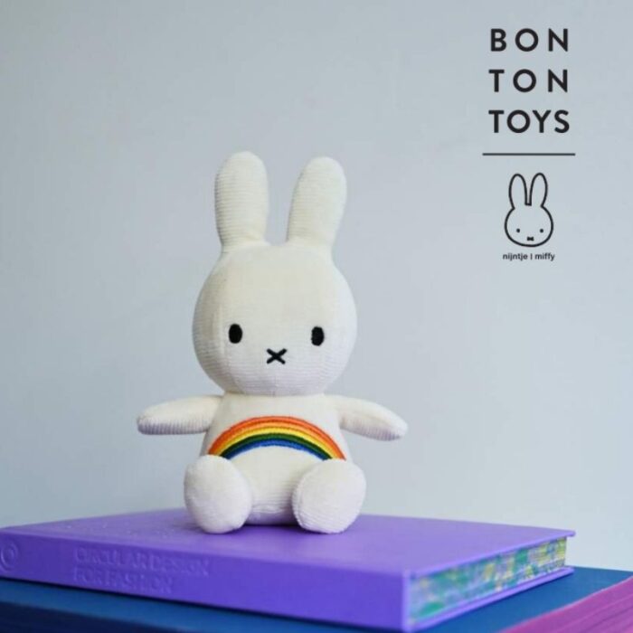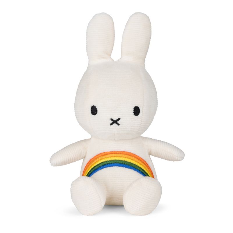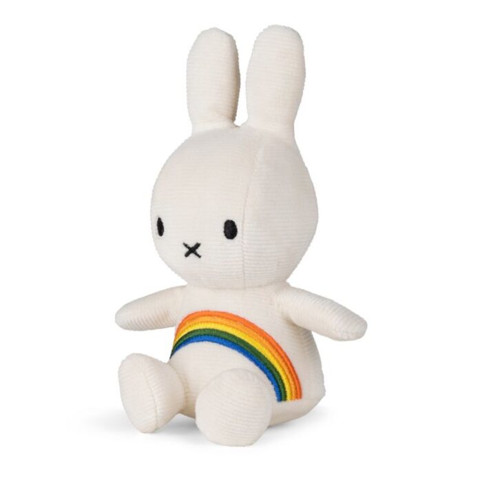 So snuggle up with this cutest, cuddliest of all toys in super-soft white corduroy with a colourful rainbow stripe across her front.