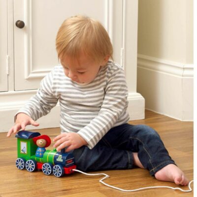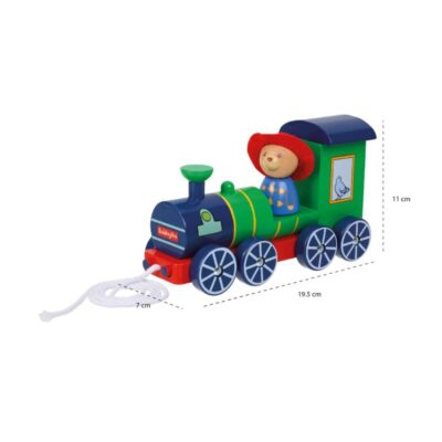 Take Paddington on a journey in his vintage steam train! Paddington can be removed from the train for that extra bit of play! Painted in bright colours, this classic children’s wooden pull along is perfect for any Paddington fan!