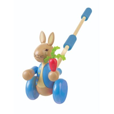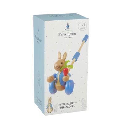 The bright push-along pal is hand painted in a gorgeous, colourful design that will have your little one toddling along in no time on many fun filled walks. This wooden Peter Rabbit push along toy comes packaged in a beautiful box and would also make a wonderful gift for that special baby or toddler in your life.