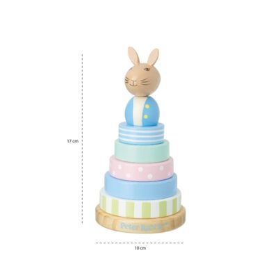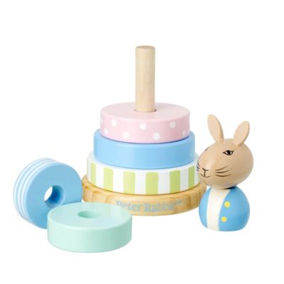 This traditional wooden stacking ring is the perfect toy for toddlers. Painted in beautiful pastel colours and patterns, with Peter sitting on the top!
